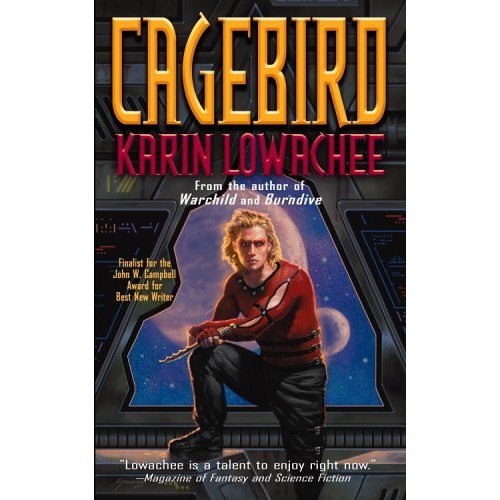 Karin Lowachee’s Cagebird, released in 2005 under the Warner Aspect imprint, is the third novel set in her Warchild universe. It can be seen as a parallel novel to Warchild and Burndive, covering a large amount of the same time period, and quite a few of the same events. This time, however, our protagonist and narrator is Yuri Kirov, pirate and erstwhile villain. We’ve been trained across the course of two previous novels to see Kirov as a negative character by virtue of his deeds and his allegiance – pirates as represented by Vincenzo Falcone are, after all, the self-centered instigators of violence from Jos’ and Ryan’s points of view, unredeemed by any desires to work for the human/striv races, focussed entirely on their own (often perverted, always commercialised) desires. Cagebird, without turning Yuri into a victim without agency, is an attempt to change this black-and-white picture into a more nuanced chiaroscuro.