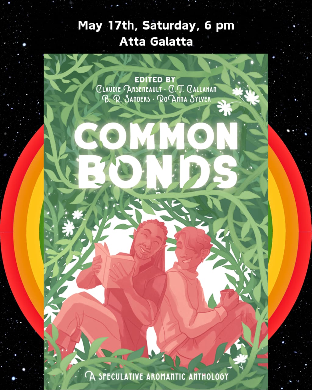 Common Bonds is an anthology of speculative short stories and poetry featuring aromantic characters. At the heart of this collection are the bonds that impact our lives from beginning to end: platonic relationships. Within this anthology, a cursed seamstress finds comfort in the presence of a witch, teams of demon hunters work with their rival to save one of their own, a peculiar scholar gets attached to those he was meant to study, and queerplatonic shopkeepers guide their pupil as they explore their relationship needs and desires. Through nineteen stories and poems, Common Bonds explores the ways platonic relationships enrich our lives.